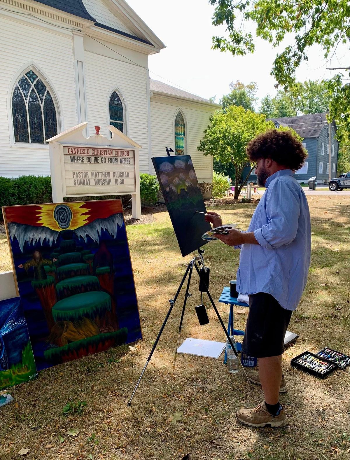 Pastor Matt, cleverly disguised as Bob Ross