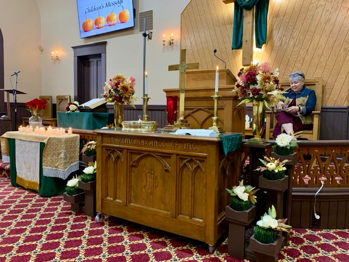 Communion table at Easter