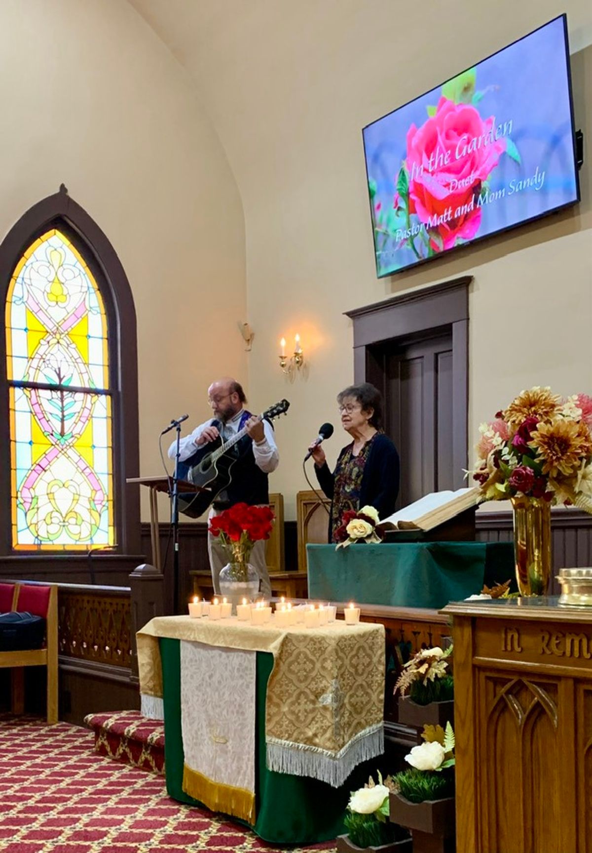 Pastor Matt and his mom, Sandy, harmonizing to