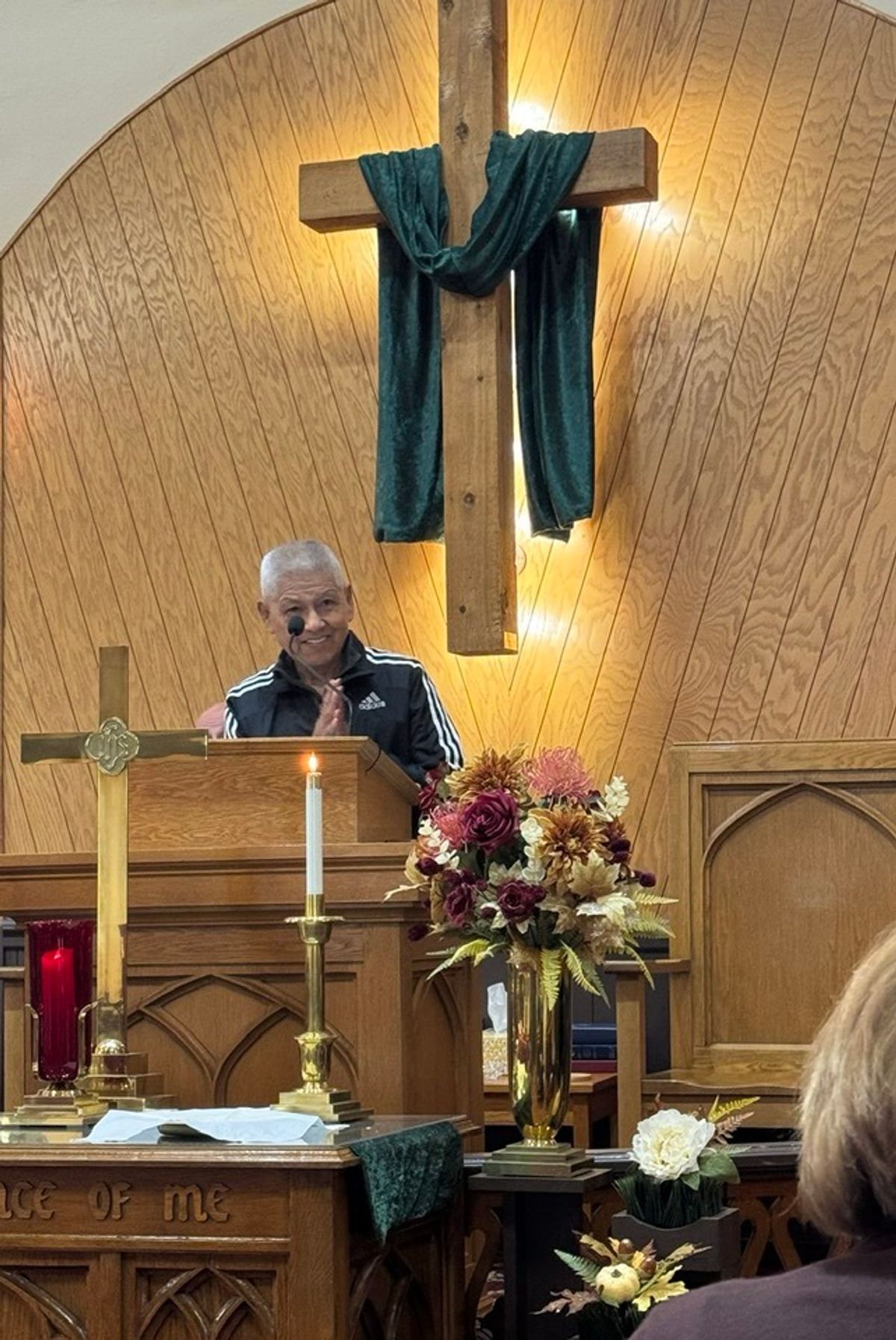 Leading us in prayer.